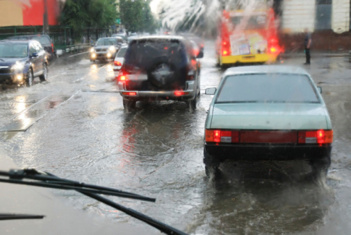 While skids on wet pavement may be frightening, hydroplaning is completely nerve-wracking. Hydroplaning happens when the water in front of your tires builds up faster than your car's weight can push it out of the way. The water pressure causes your car to rise up and slide on a thin layer of water between your tires and the road. At this point, your car can be completely out of contact with the road, and you are in danger of skidding or drifting out of your lane, or even off the road.