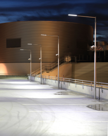 Park near other cars and under lights.