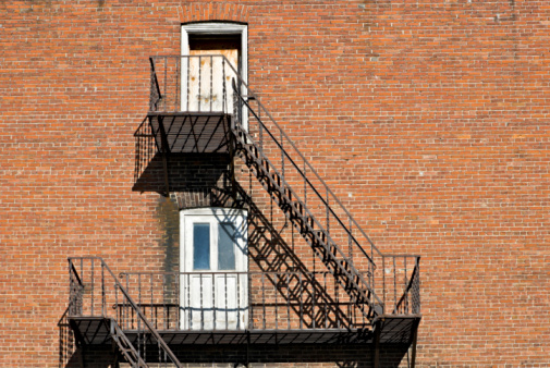 If you have a multiple story building with limited means of exit, consider window mounted evacuation ladders. Approved ladder units are available from a wide range of home improvement centers, safety equipment vendors, etc. Be sure to purchase a ladder that has stops at each rung to hold the steps away from the side of the building.